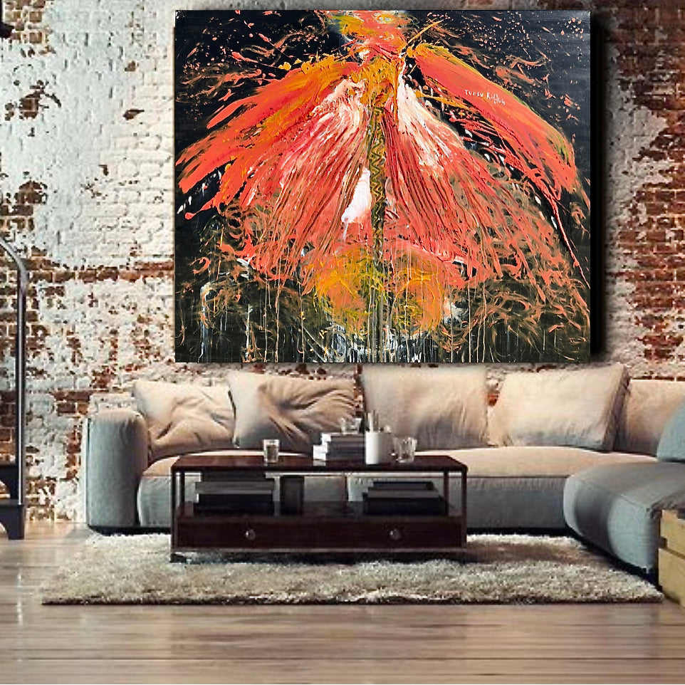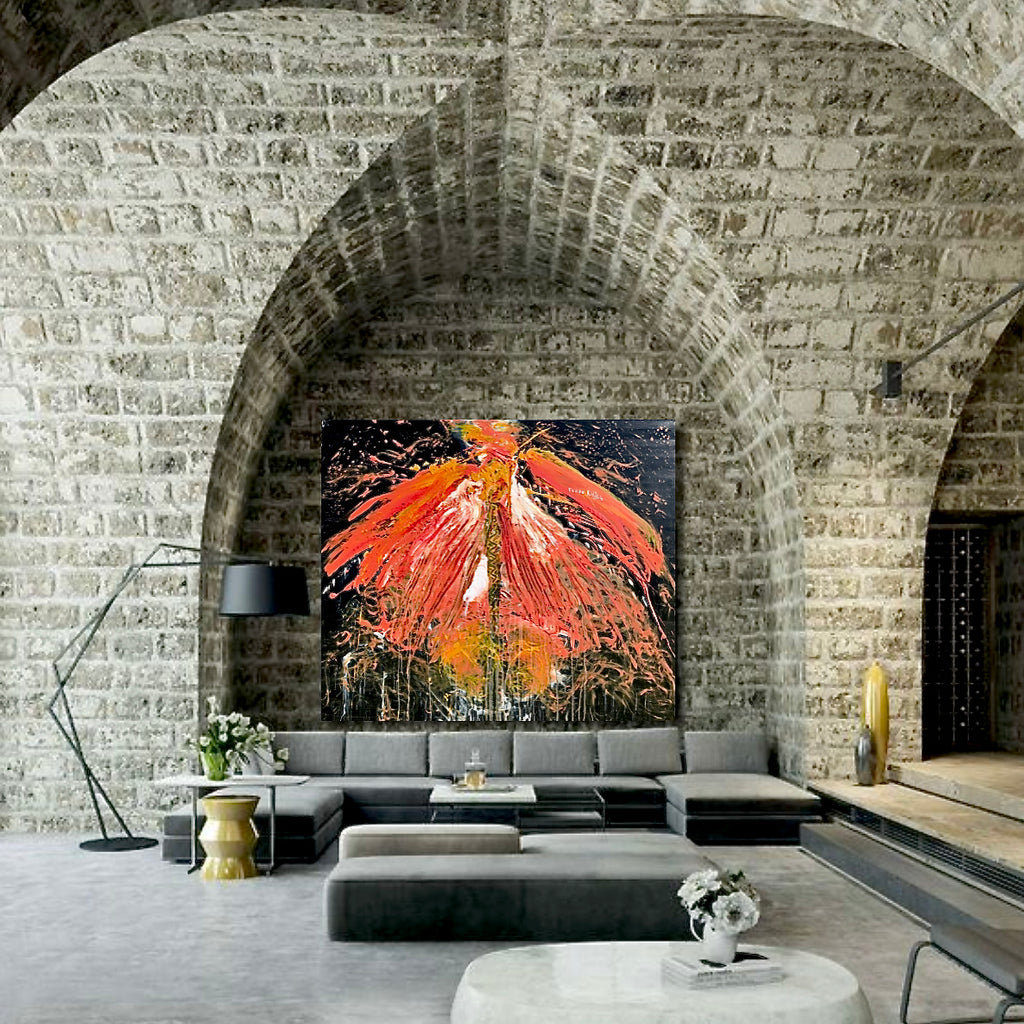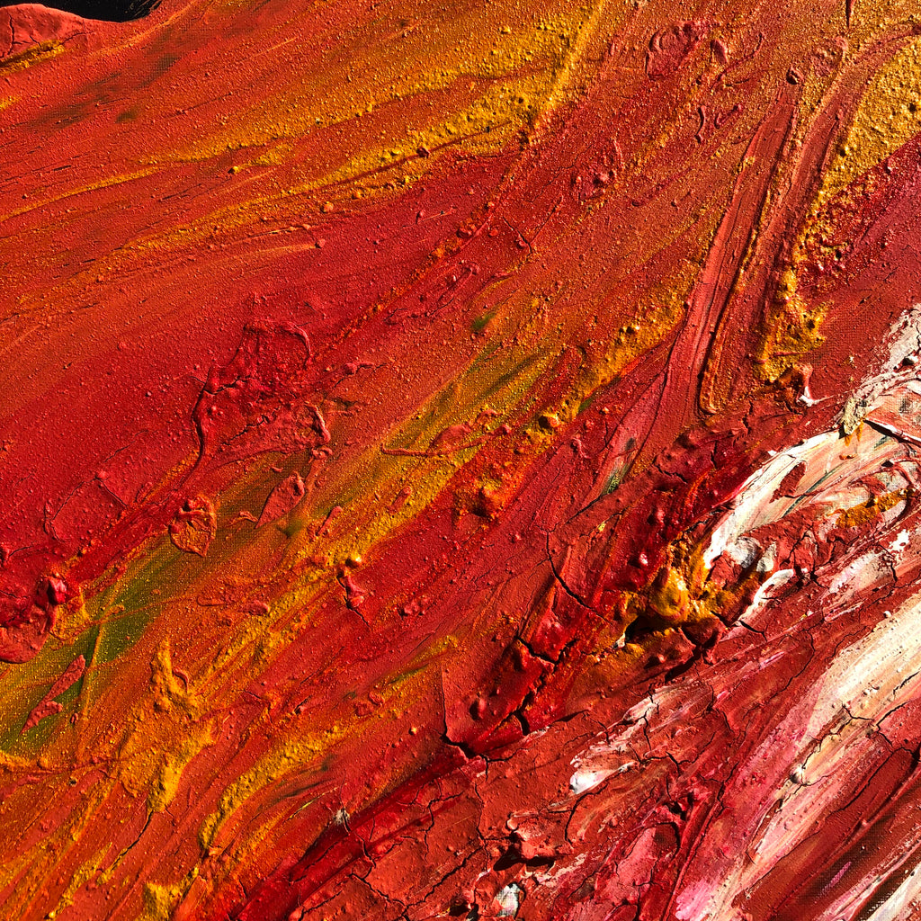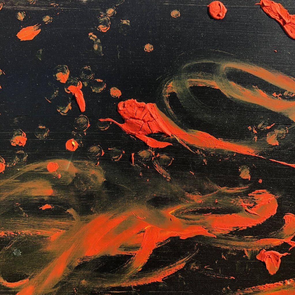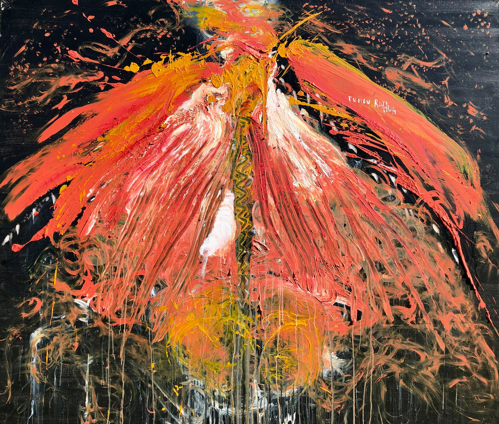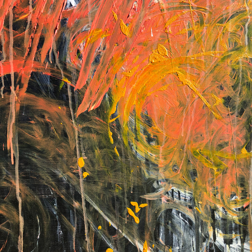 Mixed technique: Acrylic, colored pigments, glue, black ink on canvas