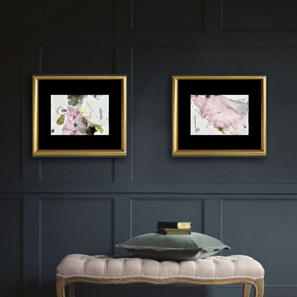 Subtle balance between the white of paper, the golden matter and the light pink. Very poetic and chic.