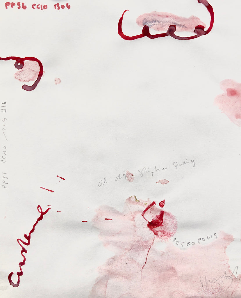 A large place is made in white on the paper to call the model’s skin and porcelain complexion. Red ink stains more or less diluted tending towards a controlled pink. Some discreet annotations with very fine lead, transcriptions of the oral exchanges between the painter and the model during the painting session. James writes the name of the model “Constance” in red ink, with a fine brush like musical notes that would escape from the space of the painting...