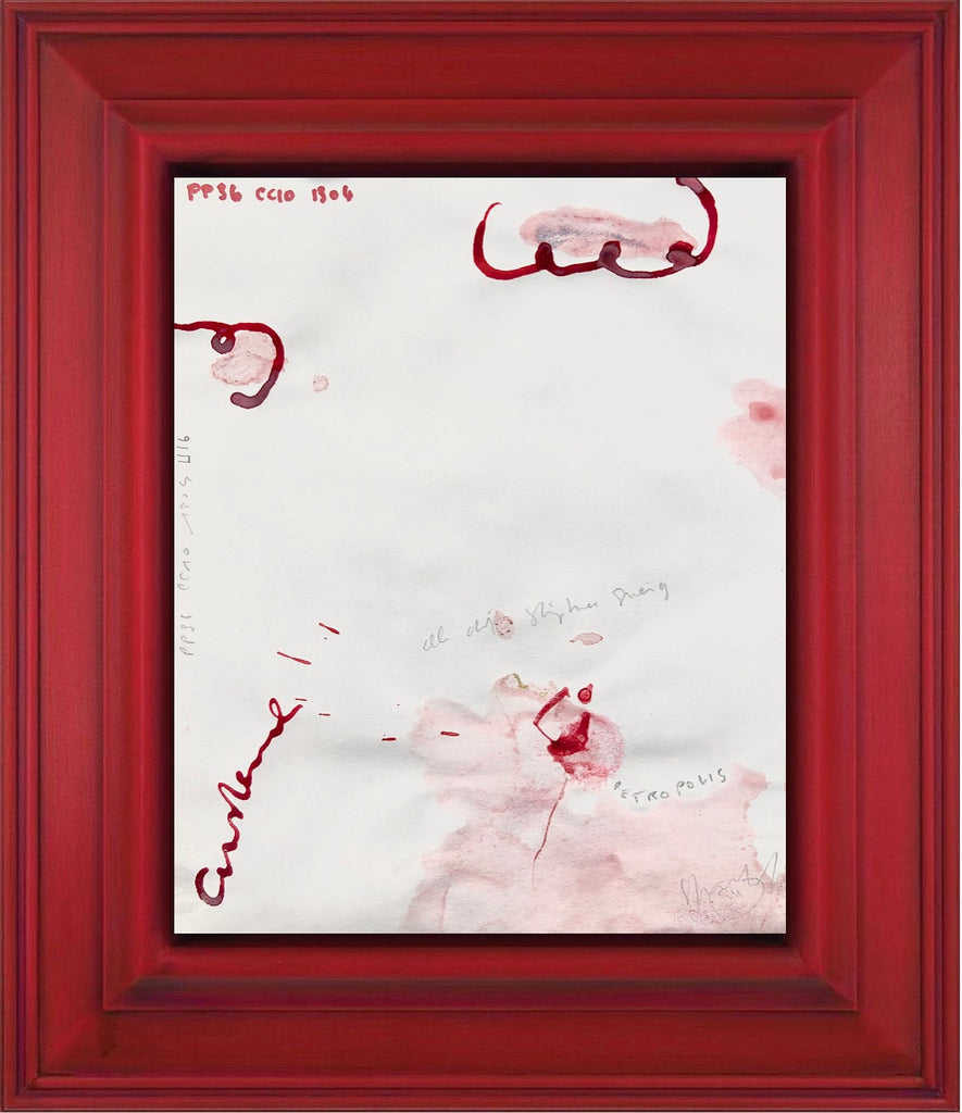 ...During the PRESENCE PAINTING performance, James always makes a series of small drawings on paper with the still fresh paint from the MATRIX presence painting (200x170cm), here "PP36 - The girl next door"
