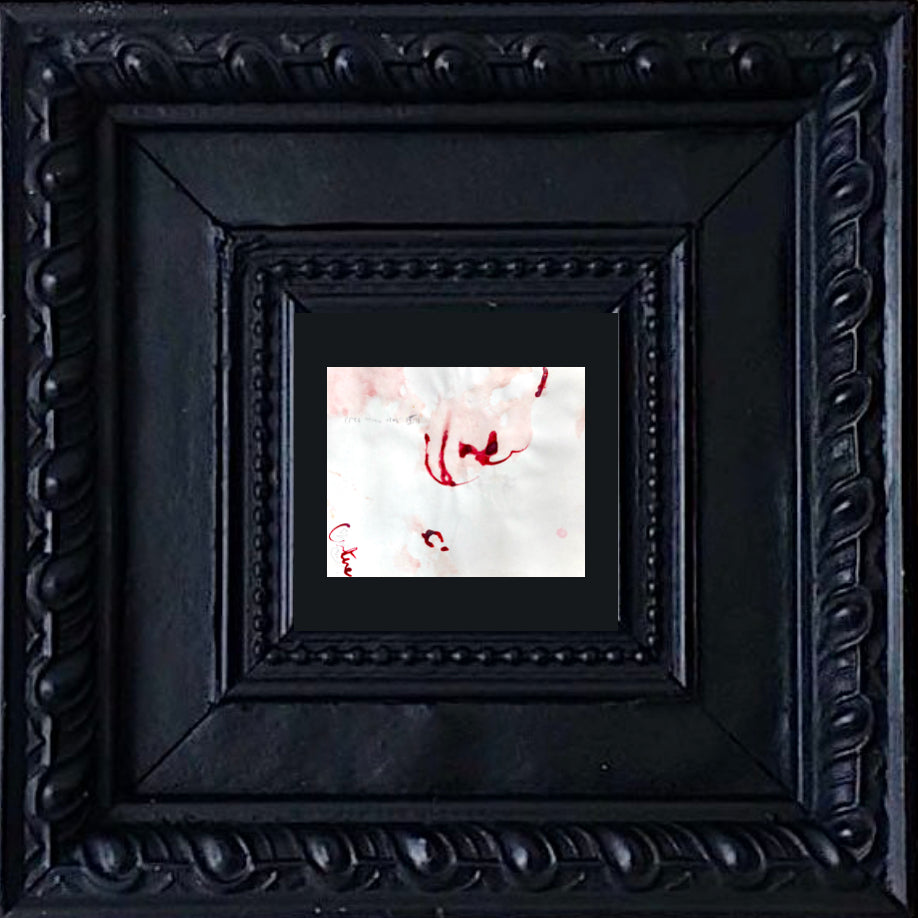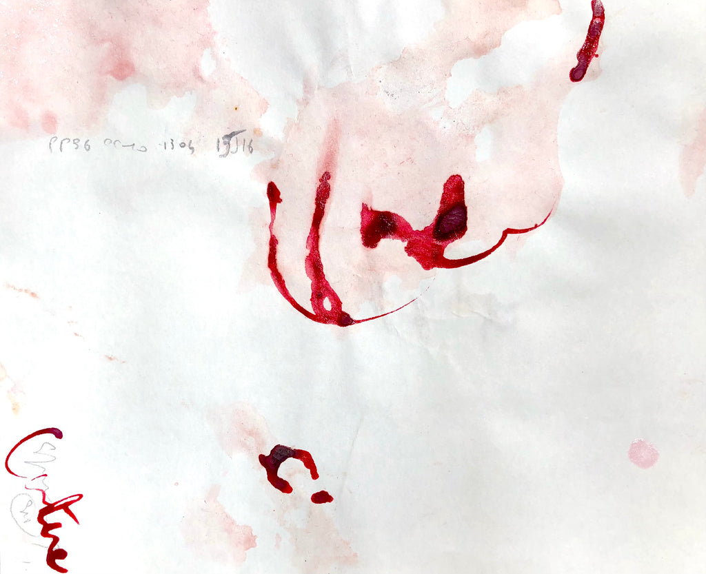 Red ink stains more or less diluted tending towards a controlled pink. Some discreet annotations with very fine lead, transcriptions of the oral exchanges between the painter and the model during the painting session...