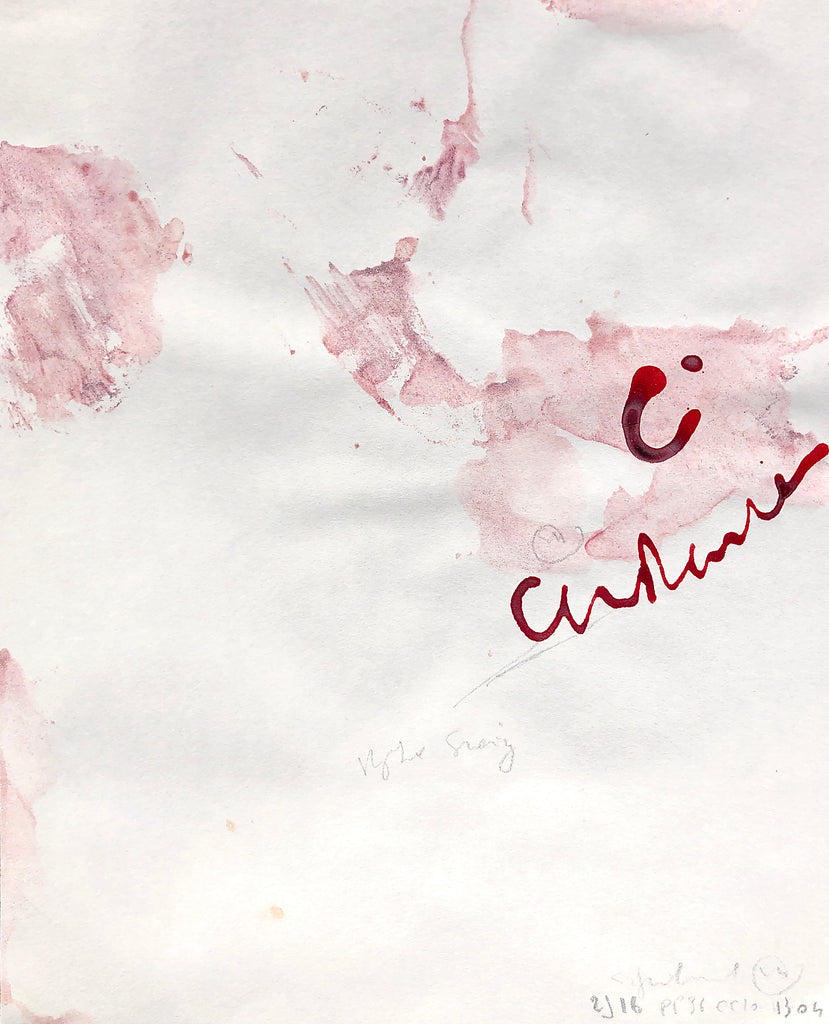 ...During the PRESENCE PAINTING performance, James always makes a series of small drawings on paper with the still fresh paint from the MATRIX presence painting (200x170cm), here "PP36 - The girl next door"