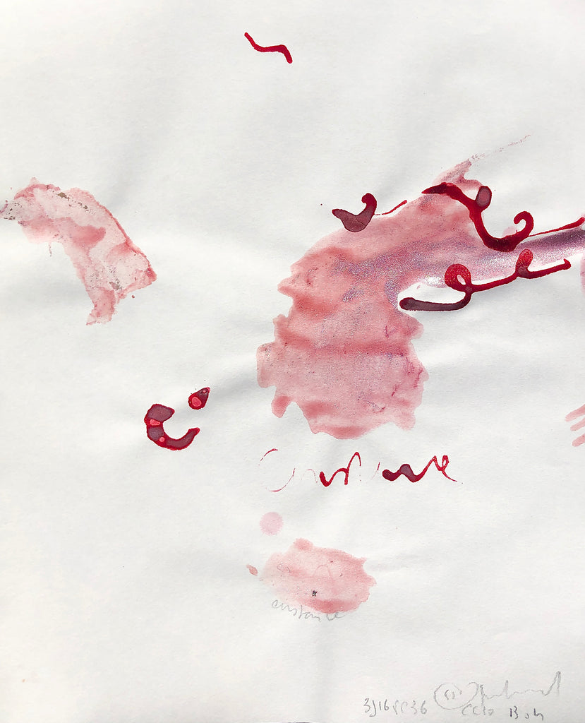 ...During the PRESENCE PAINTING performance, James always makes a series of small drawings on paper with the still fresh paint from the MATRIX presence painting (200x170cm), here "PP36 - The girl next door"