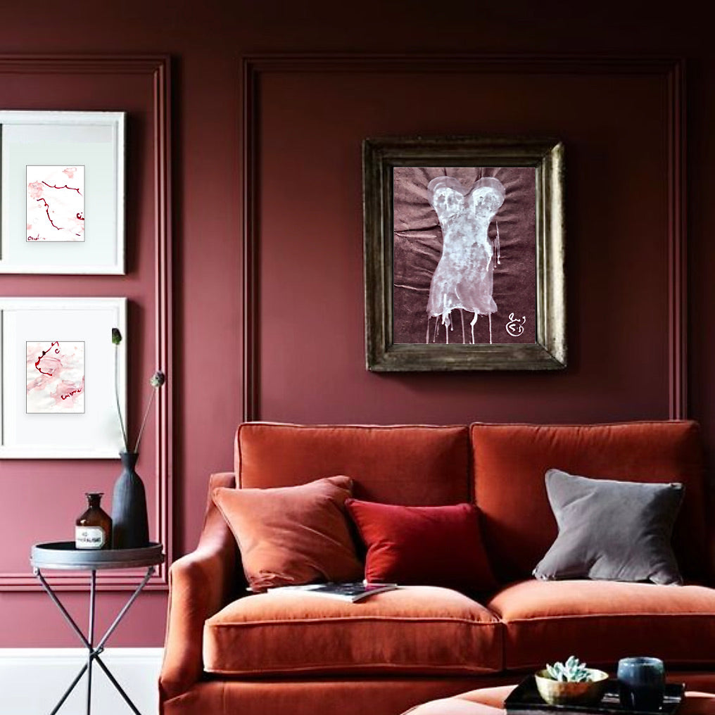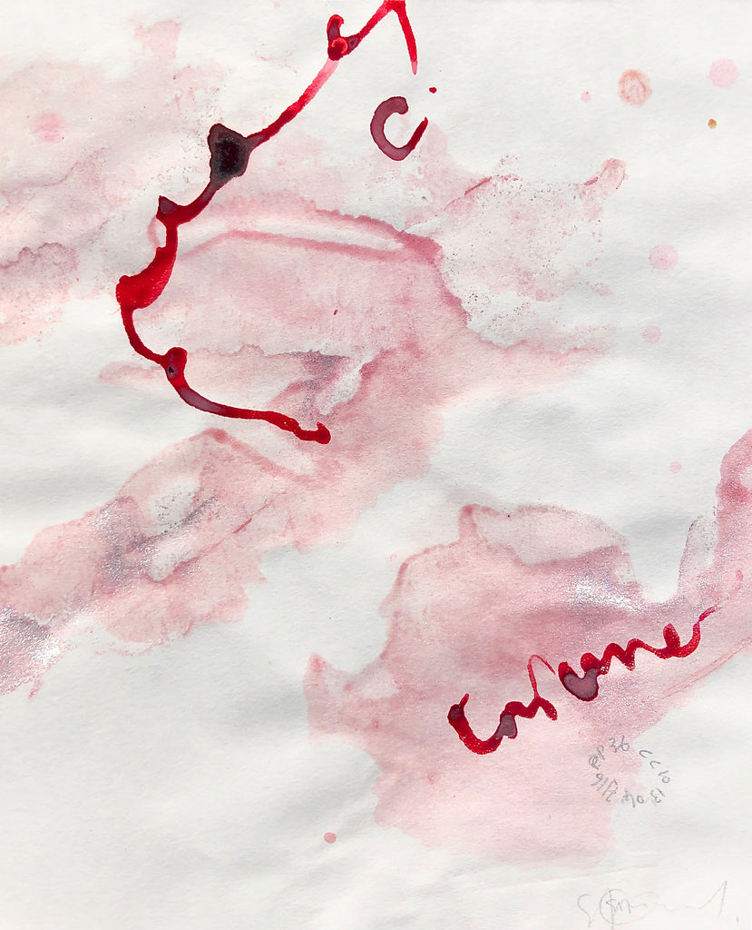 ...During the PRESENCE PAINTING performance, James always makes a series of small drawings on paper with the still fresh paint from the MATRIX presence painting (200x170cm), here "PP36 - The girl next door"