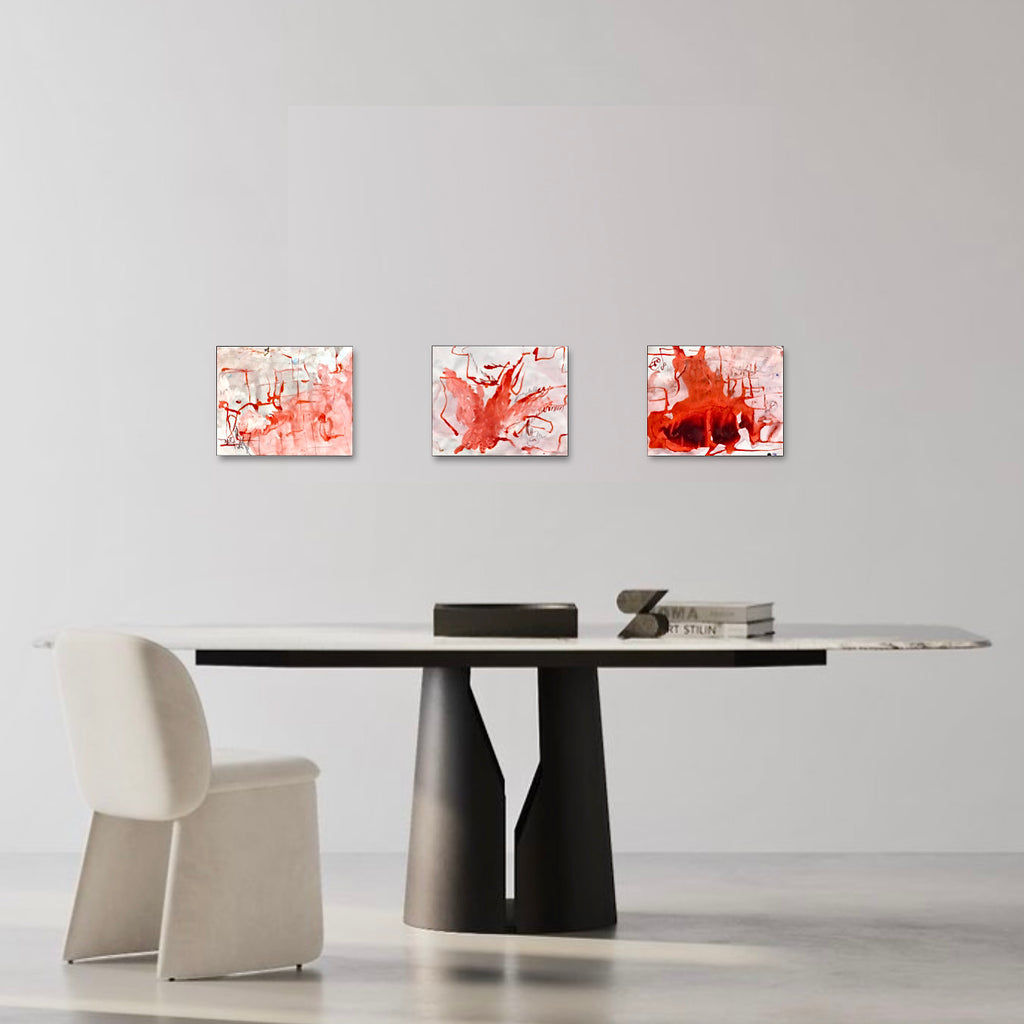 "I always make Xsmall paintings on paper after the large size canvas Presence painting. I use the liquid paint left of this large canvas to make the drawings. It is a way of physically linking these two types of creations." The presence painting is inspired by a business man who likes to smoke Havana cigars.This series of painting on paper of 15 items is associated with the performance PRESENCE PAINTING N°40. *