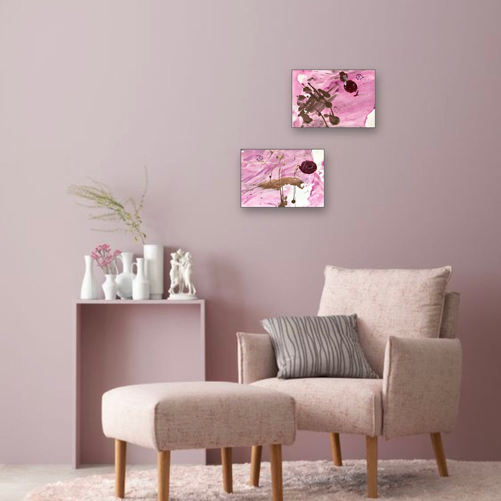Mixed technique: Acrylic, brown red and pink ink, glue on paper