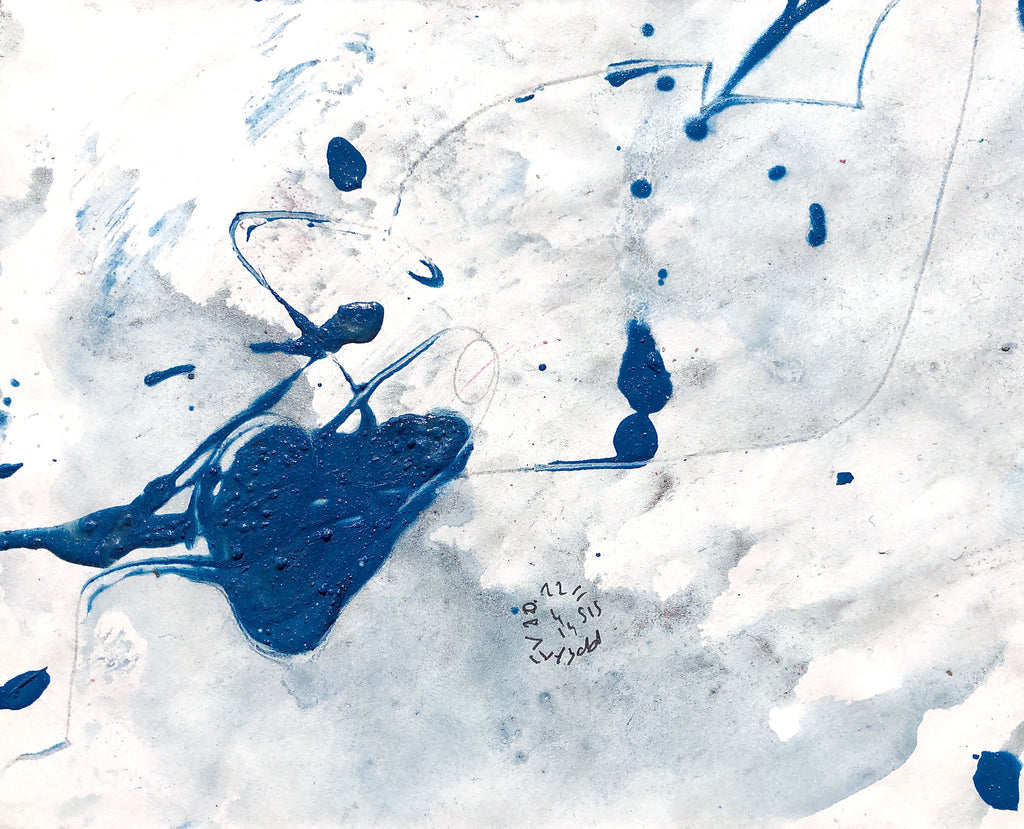 I always make Xsmall paintings on paper after the large size canvas « Presence painting ». I use the liquid paint left of the large canvas. It is a way of physically linking these two types of creations.This painting on paper is associated with the performance Presence painting n°47.James says that this painting is lush. He imagines a powerful and lush nature, visible in the accumulation of colors on the canvas. He imagines a territory where you can get lost... « Là, tout n’est qu’ordre et beauté » Charles Baudelaire