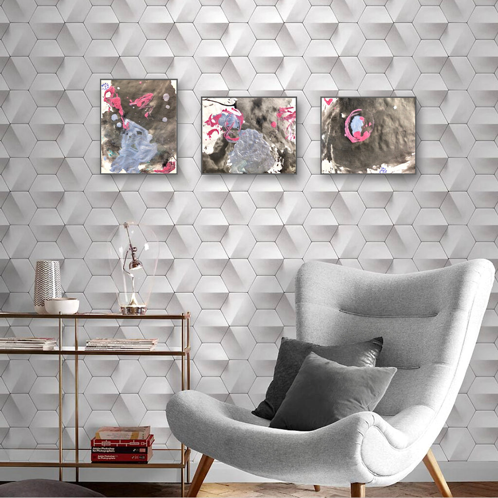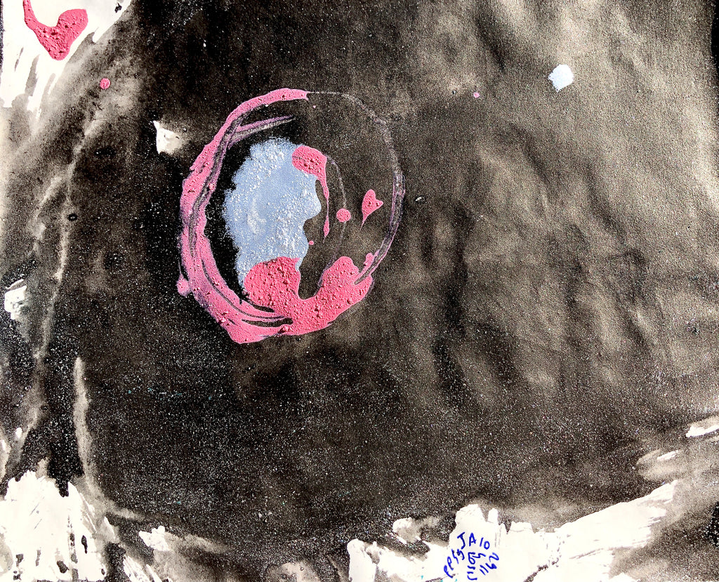 "I always make Xsmall paintings on paper after the large size canvas Presence painting*. I use the liquid paint left of this large canvas to make the drawings. It is a way of physically linking these two types of creations."