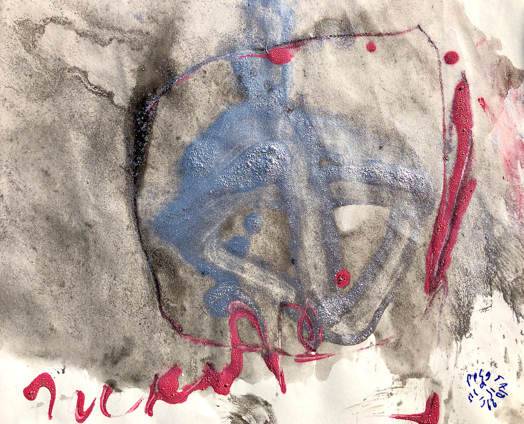 "I always make Xsmall paintings on paper after the large size canvas Presence painting*. I use the liquid paint left of this large canvas to make the drawings. It is a way of physically linking these two types of creations."