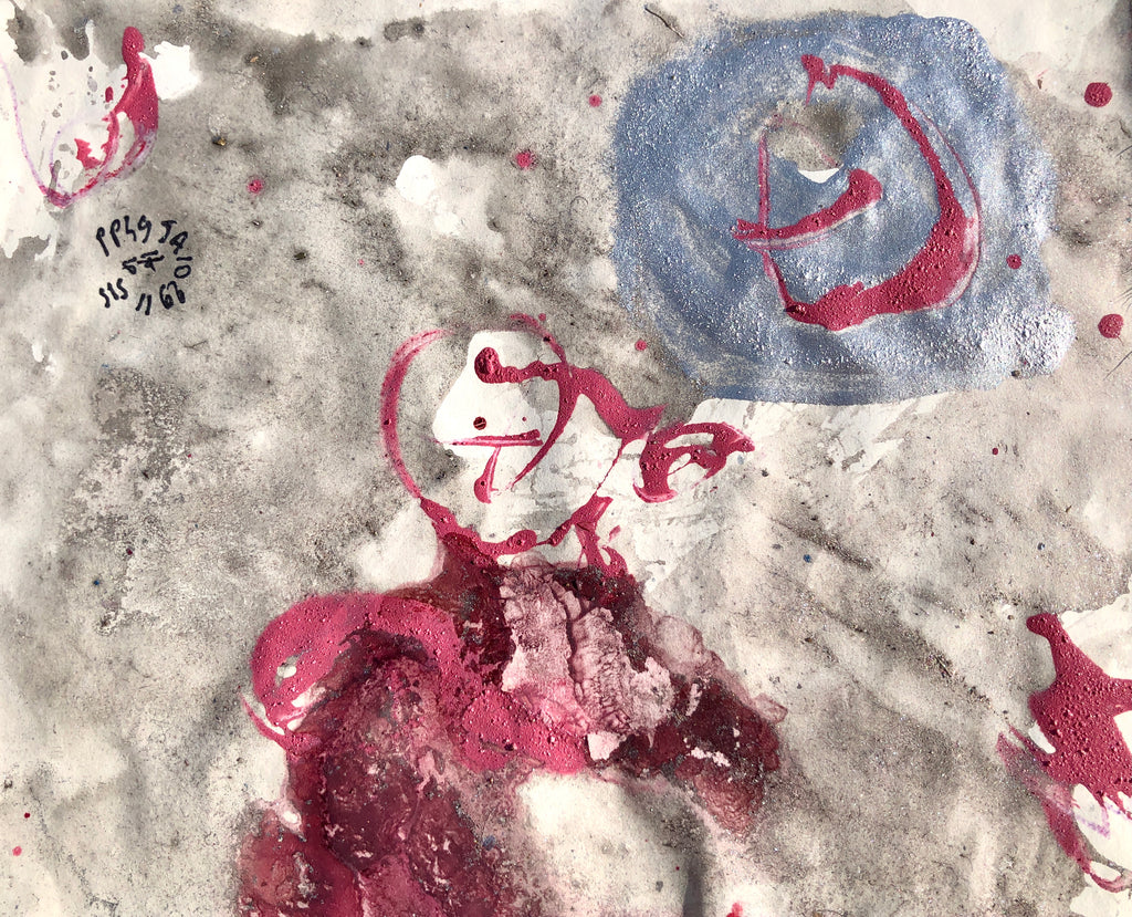 "I always make Xsmall paintings on paper after the large size canvas Presence painting*. I use the liquid paint left of this large canvas to make the drawings. It is a way of physically linking these two types of creations."