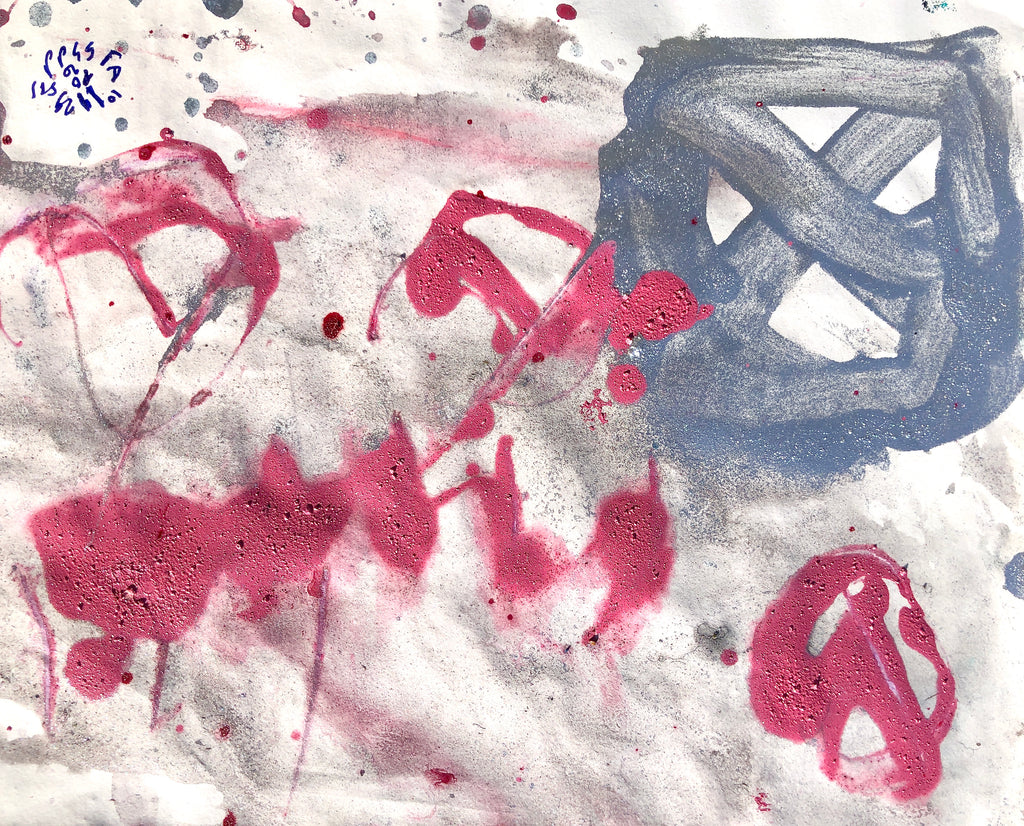 "I always make Xsmall paintings on paper after the large size canvas Presence painting*. I use the liquid paint left of this large canvas to make the drawings. It is a way of physically linking these two types of creations."