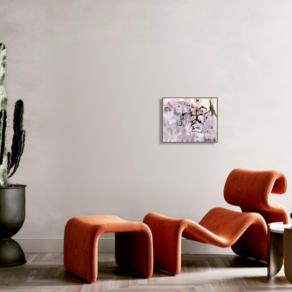 "I always make Xsmall paintings on paper after the large size canvas Presence painting. I use the liquid paint left of this large canvas to make the drawings. It is a way of physically linking these two types of creations."