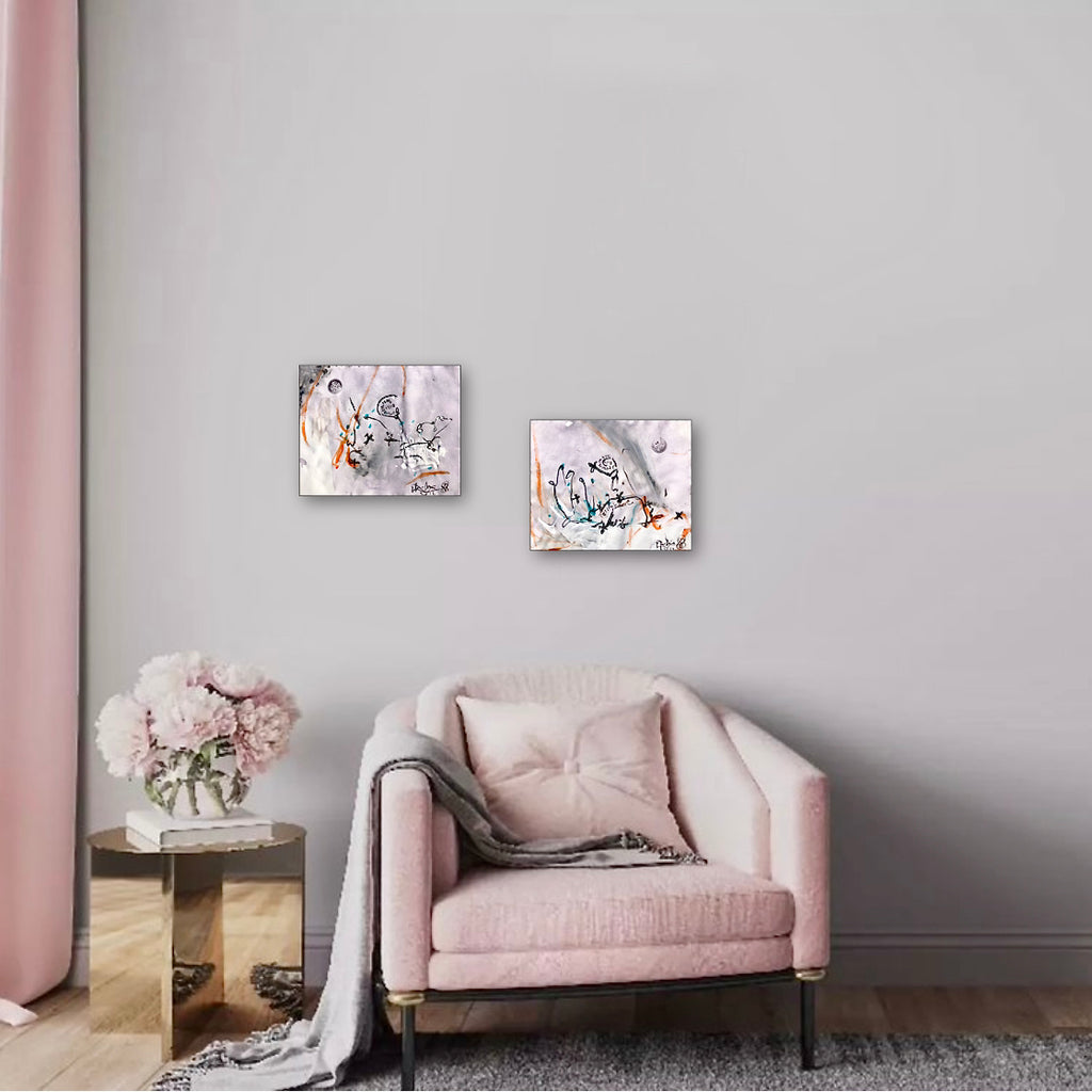 "I always make Xsmall paintings on paper after the large size canvas Presence painting. I use the liquid paint left of this large canvas to make the drawings. It is a way of physically linking these two types of creations."