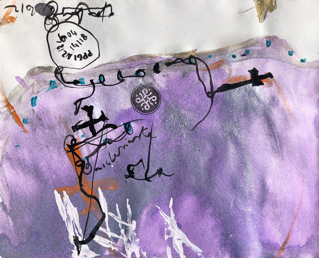"I always make Xsmall paintings on paper after the large size canvas Presence painting. I use the liquid paint left of this large canvas to make the drawings. It is a way of physically linking these two types of creations."