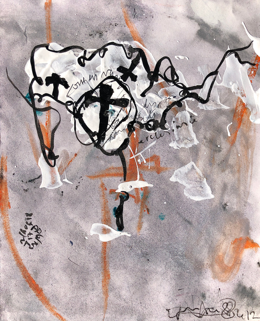 "I always make Xsmall paintings on paper after the large size canvas Presence painting. I use the liquid paint left of this large canvas to make the drawings. It is a way of physically linking these two types of creations."